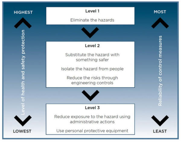 Note: Under section 36 of the WHS Regulation, if risk elimination is not reasonably practicable, risks must be minimized using the Hierarchy of Control.